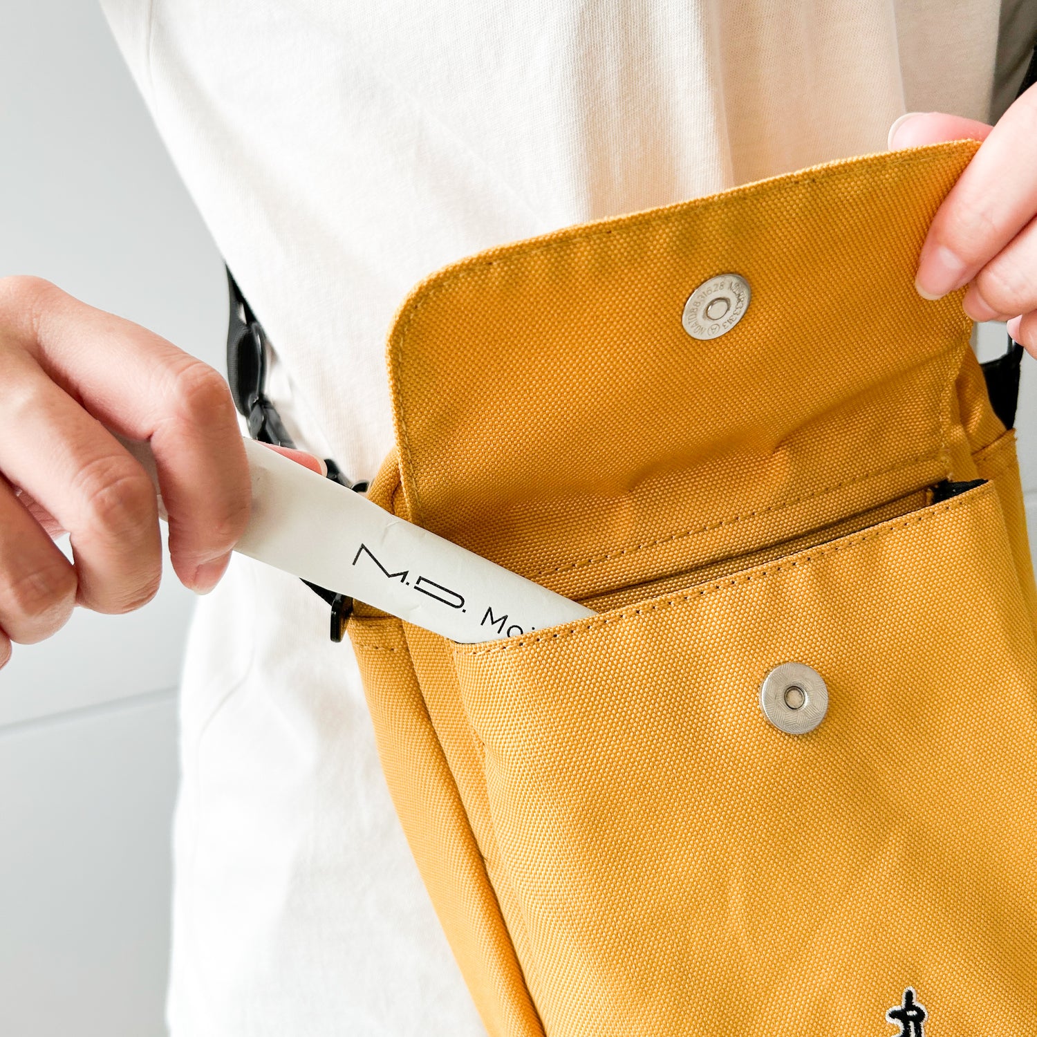 Giữ chặt phía dưới túi, bẻ nắp nhỏ phía trên túi xuống để tháo nắp ra.Tránh tiếp xúc tay